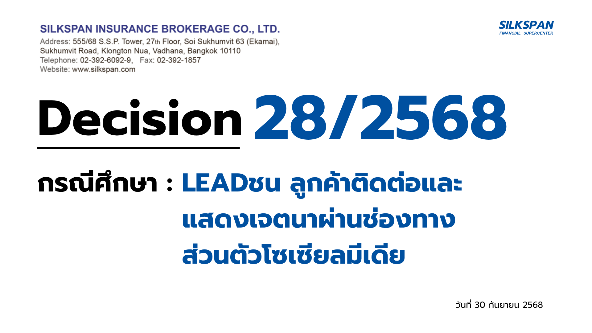 กรณีศึกษาที่ 28 เรื่อง : 30.09.2025_LEADชน ลูกค้าติดต่อและแสดงเจตนาผ่านช่องทางส่วนตัวโซเซียลมีเดีย