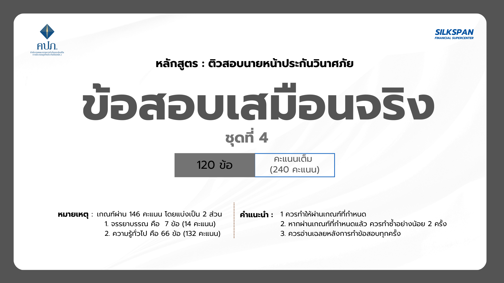 License EP.8 "ตัวอย่างข้อสอบจริง ชุดที่ 4"