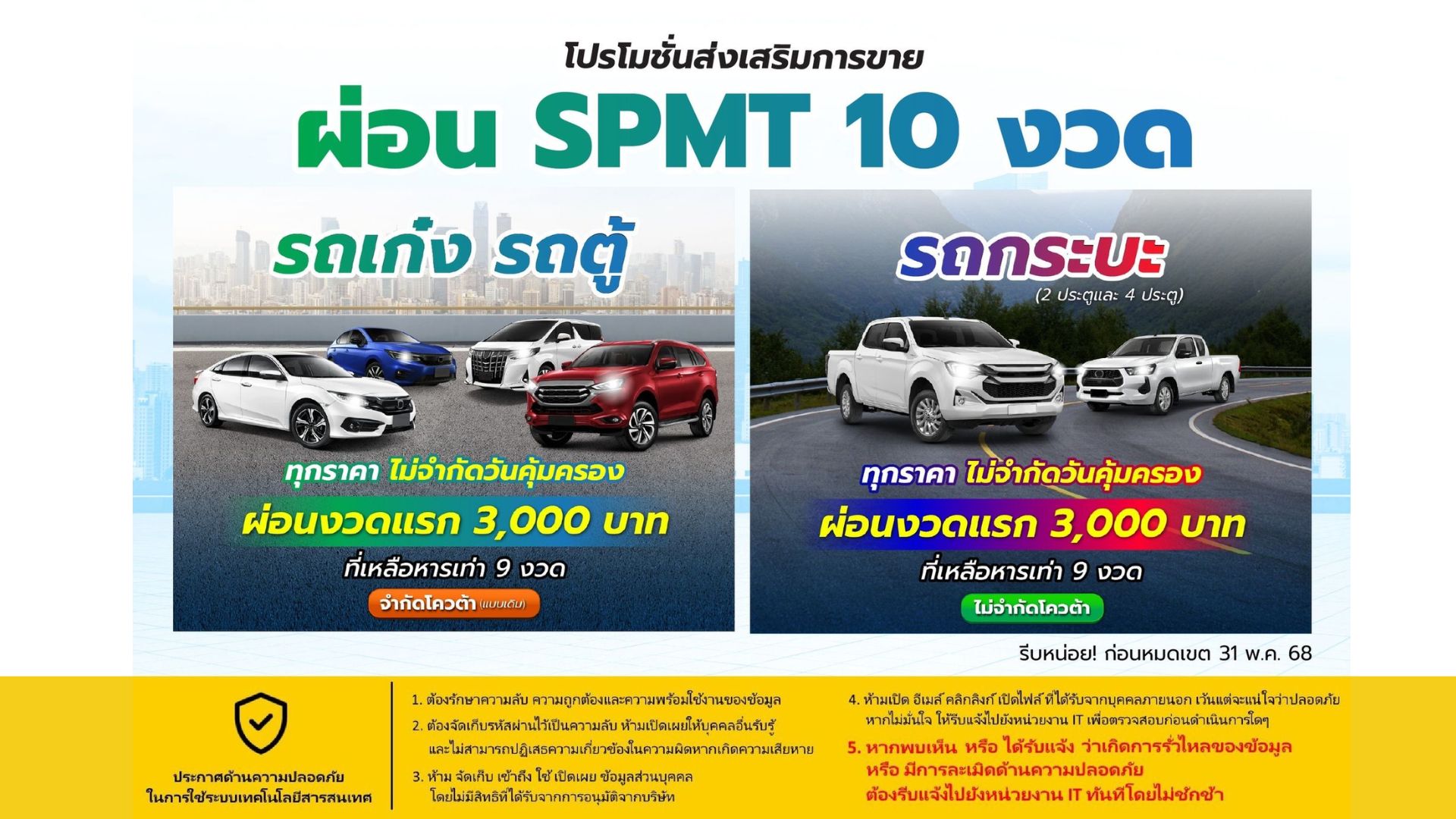โปรโมชั่นส่งเสริมการขาย ผ่อน SPMT 10 งวด โปรโมชั่นนี้หมดเขต 31 พฤษภาคม 2568