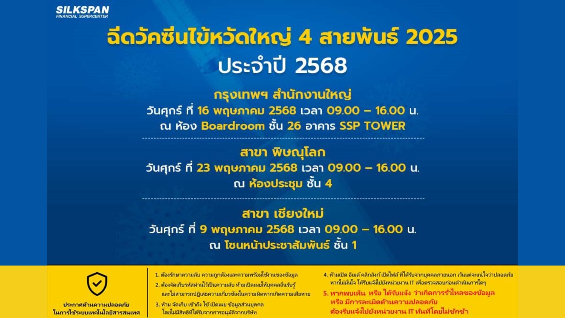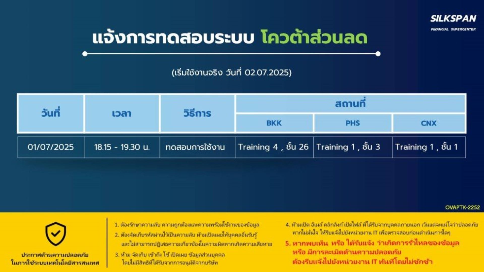 01 - 02 ก.ค. 2568 แจ้งการทดสอบระบบ โควต้าส่วนลด