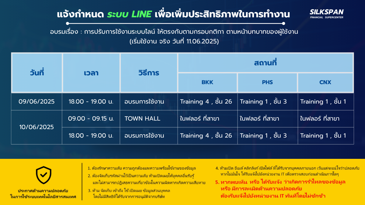 10 -11 มิ.ย. 2568 กำหนดการอบรมระบบ Line