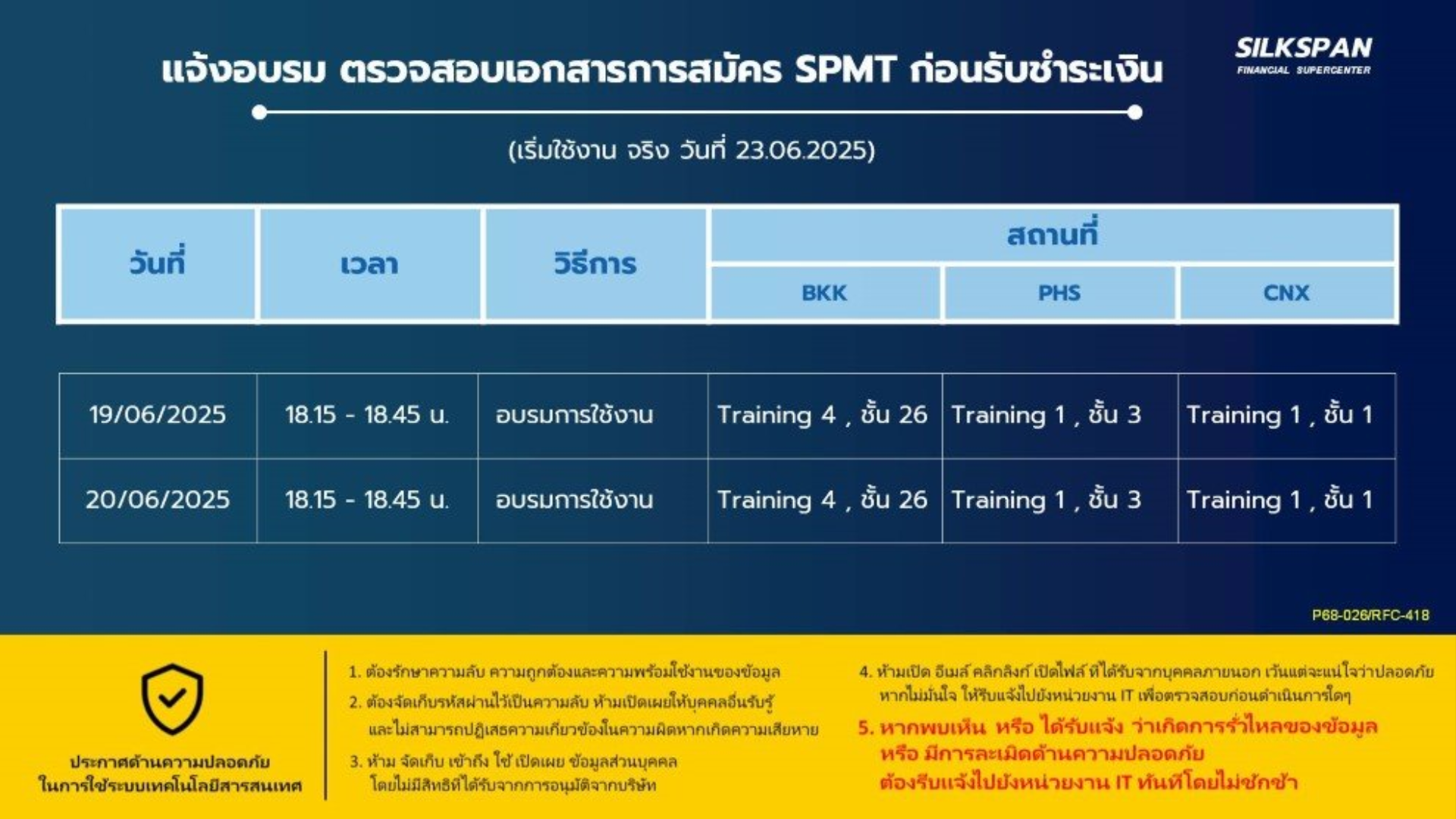 19 - 20 มิ.ย. 2568 กำหนดการอบรม ตรวรสอบเอกสารการสมัคร SPMT ก่อนรับชำระเงิน