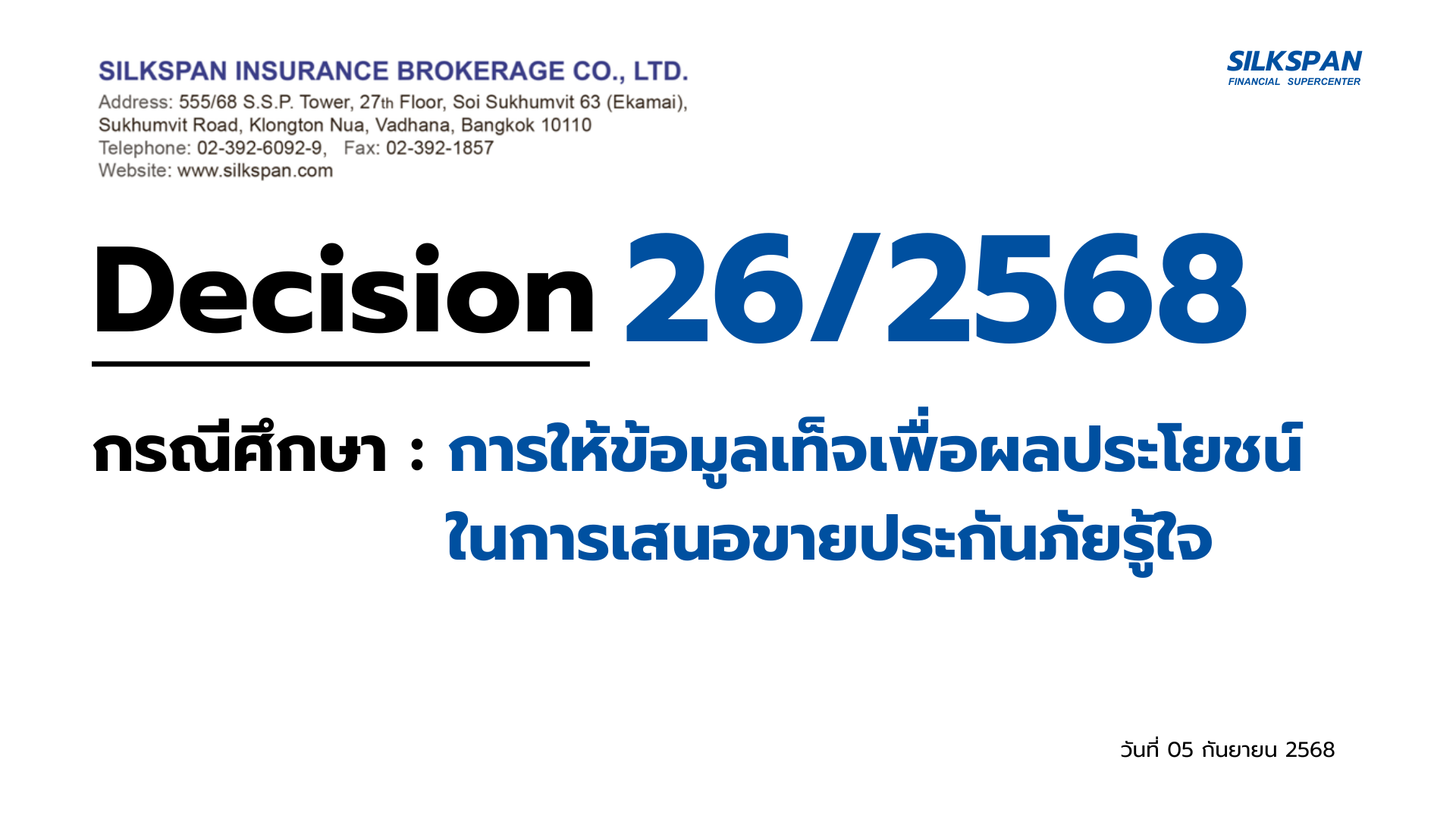 กรณีศึกษาที่ 26 เรื่อง : 05.09.2025_การให้ข้อมูลเท็จเพื่อผลประโยชน์ในการเสนอขายประกันภัยรู้ใจ