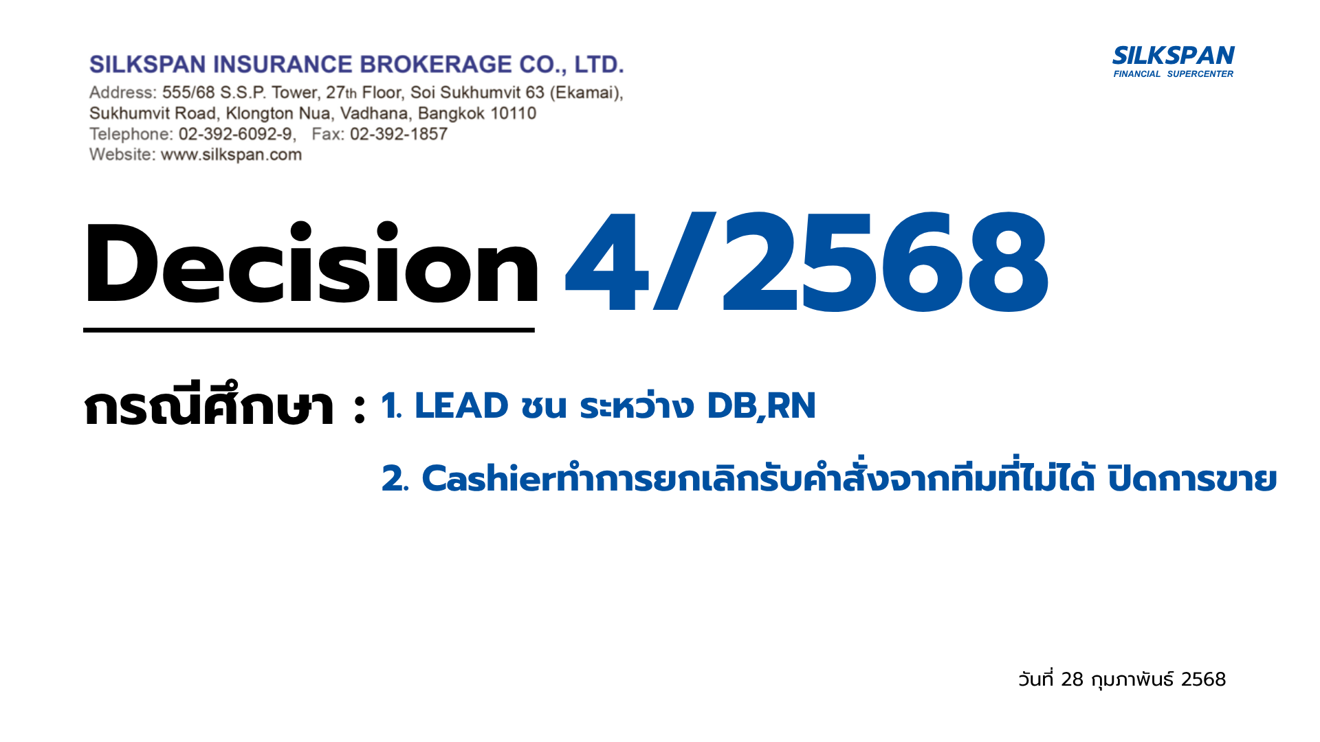 กรณีศึกษาที่ 4 เรื่อง : 28.02.2025_LeadชนDBกับRN_Cashierทำการยกเลิกระบบคำสั่งจากทีมที่ไม่ได้ปิดขาย